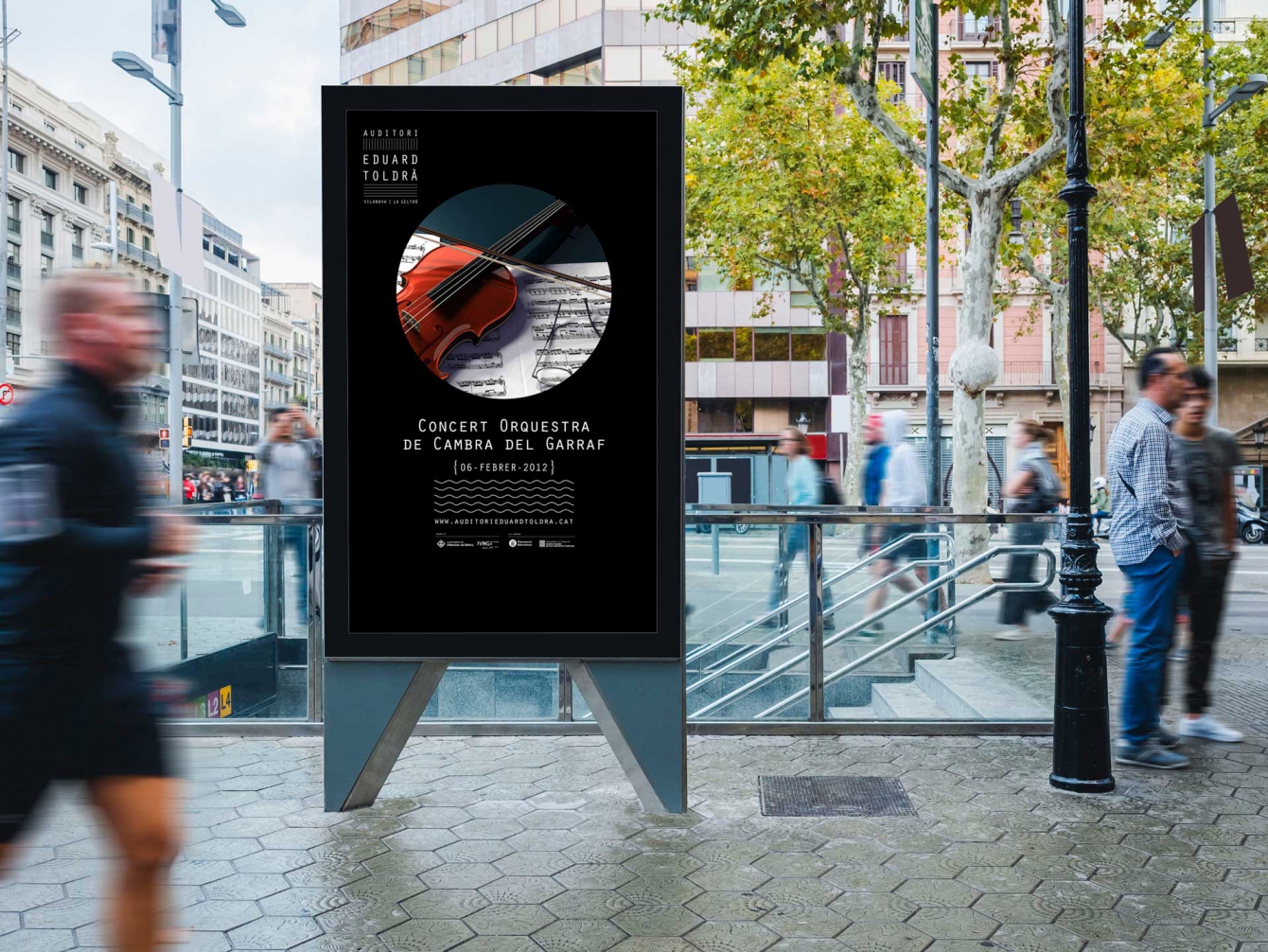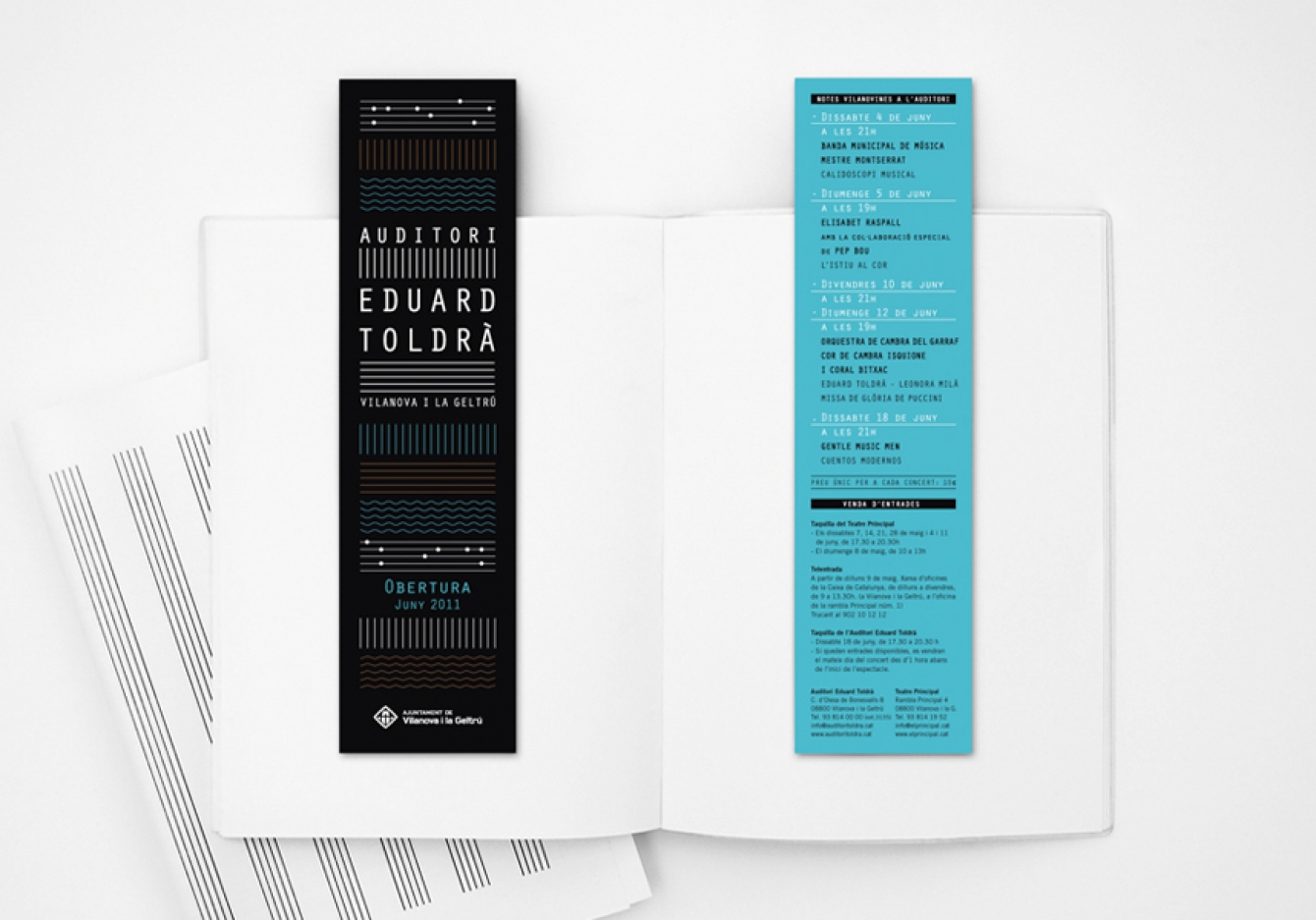 Basamos formalmente la identidad corporativa del Auditorio Eduard Toldrà en el origen de la partitura, como punto de partida para el músico. Es un homenaje a la creatividad musical y al talento de Eduard Toldrà, compositor y músico de Vilanova i la Geltrú.